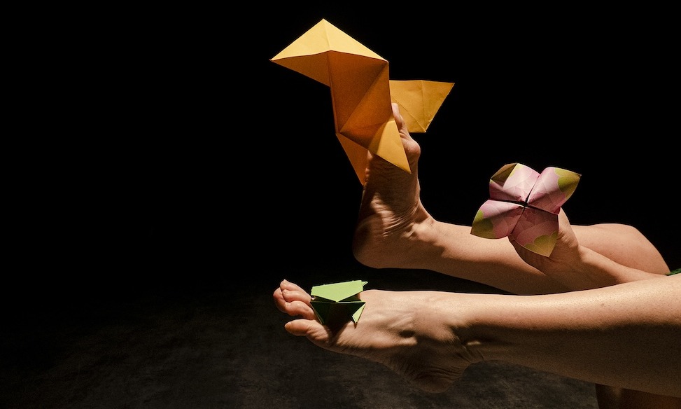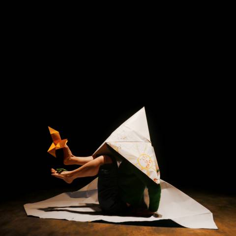 OrigamiiiZ est une performance dansée qui s’inspire de l’origami, art du pliage japonais, pour mettre en avant la richesse de l’imaginaire et de la transformation. Une danseuse plie et déplie une grande feuille de papier qui laisse apparaître des formes étranges et amusantes dans laquelle la danse se faufile, se froisse, s’articule… Un-e musicien-ne l’accompagne et crée in situ une composition sonore originale qui puise dans les diverses sonorités du papier.